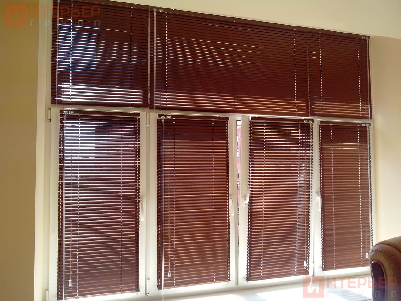 Горизонтальные жалюзи на пластиковые окна – цвет орехово-коричневый