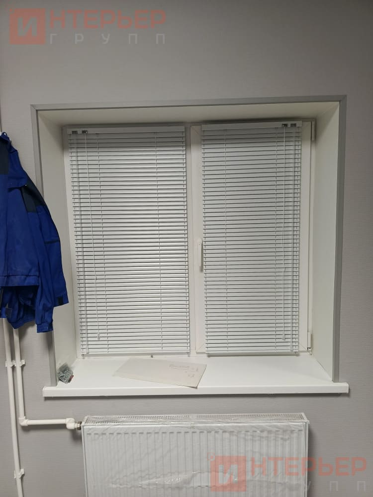 Горизонтальные алюминиевые жалюзи на пластиковые окна – цвет белый